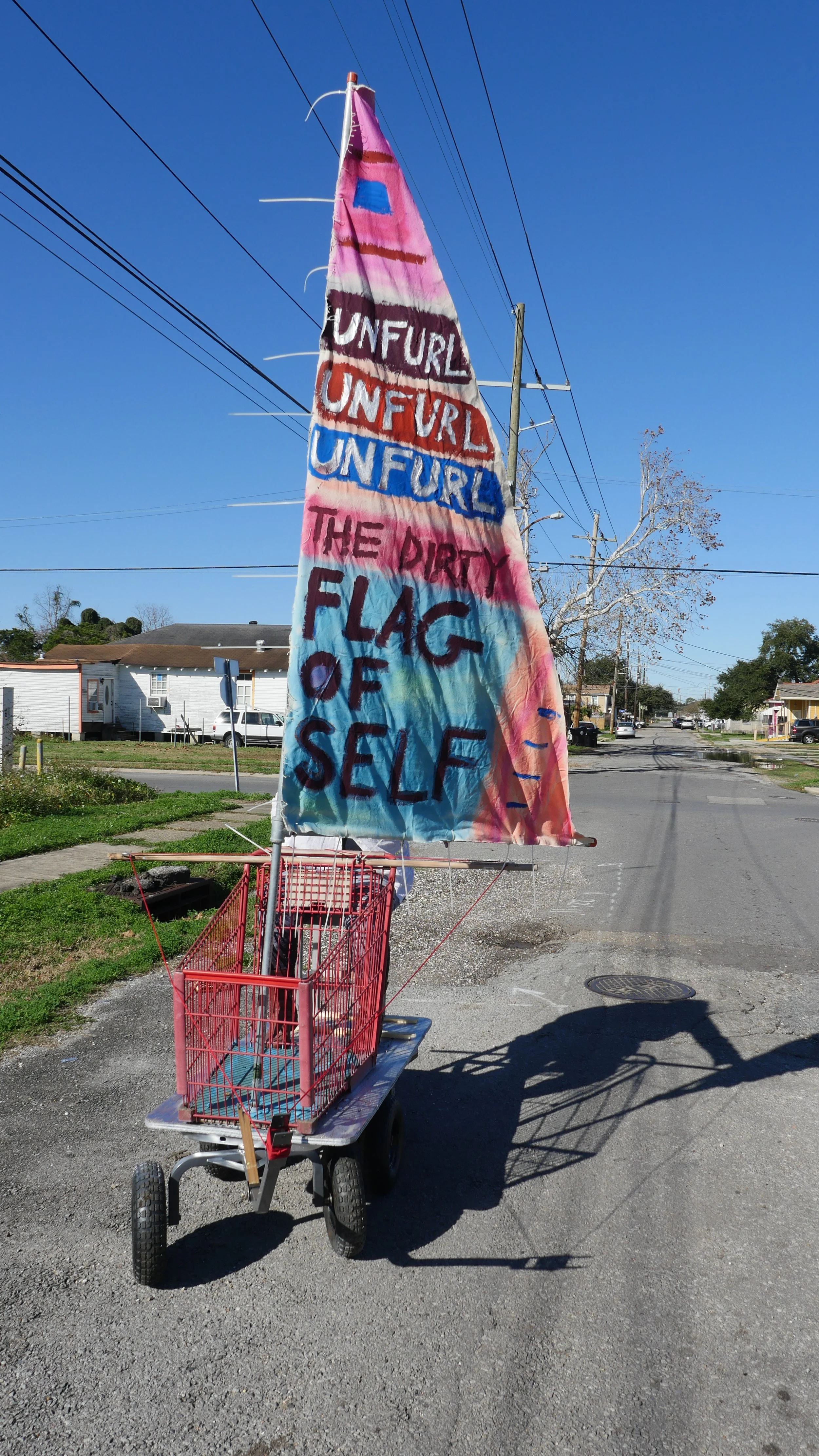 Wind Shopping (2019) - Repurposed Shopping Cart, Canvas Sail, Paint